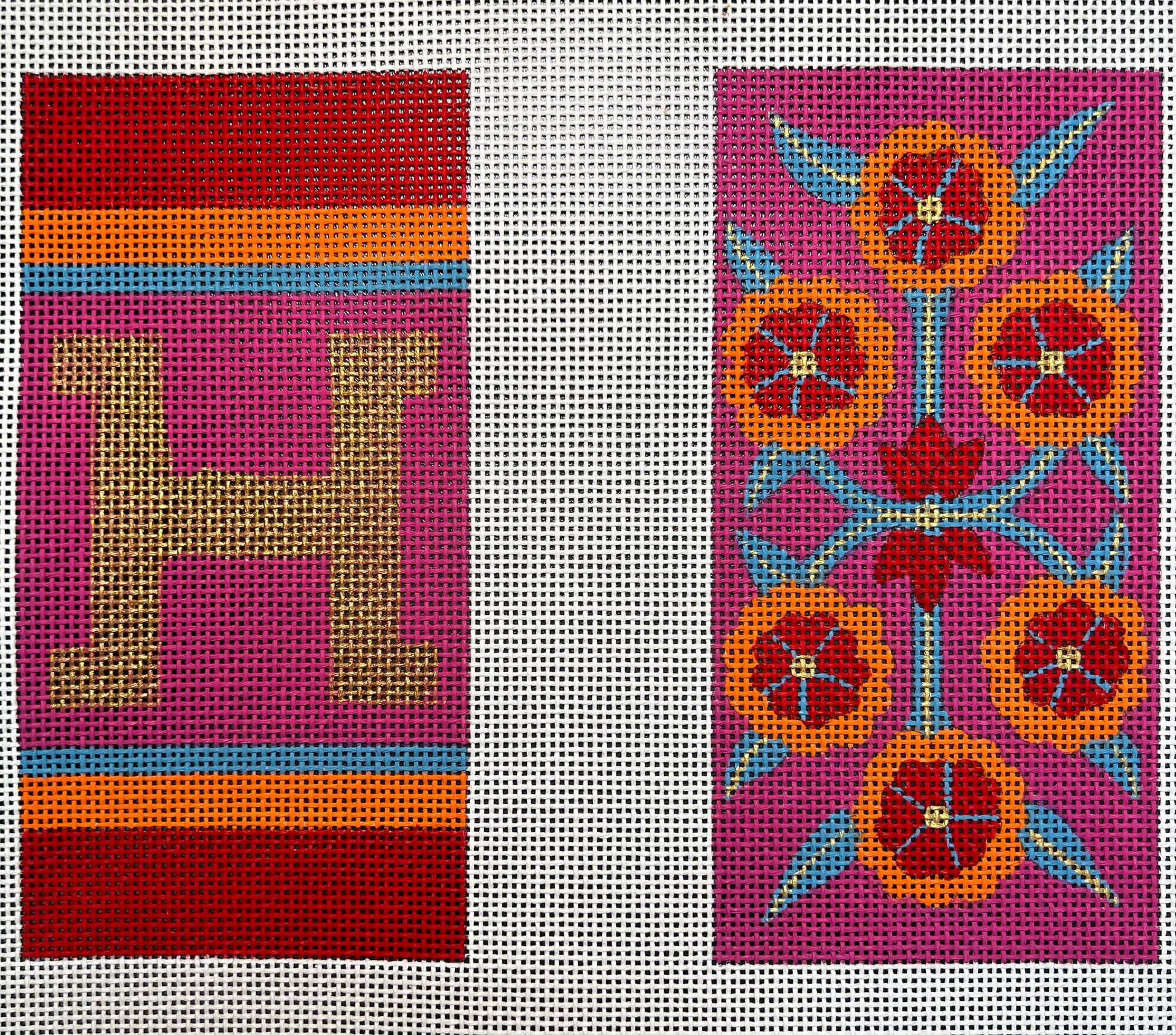 Floral and Striped H Eyeglass Case