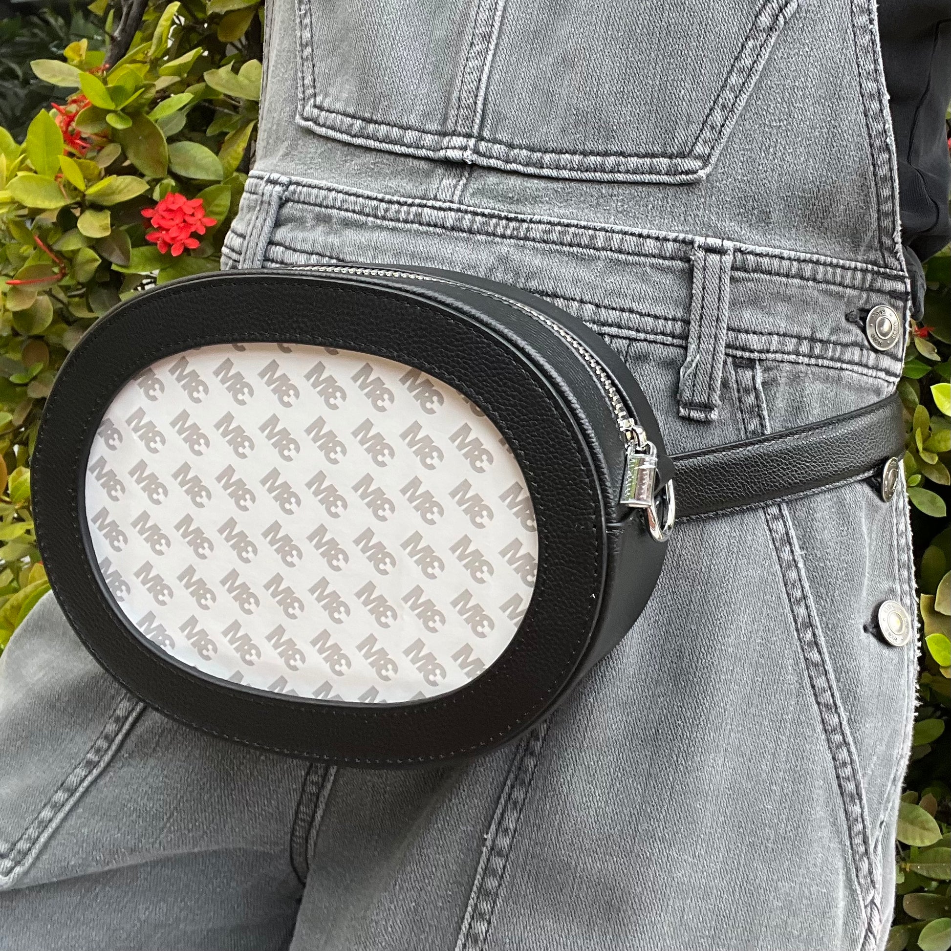 Black Leather Self-Finishing Oval Belt/Crossbody Bag