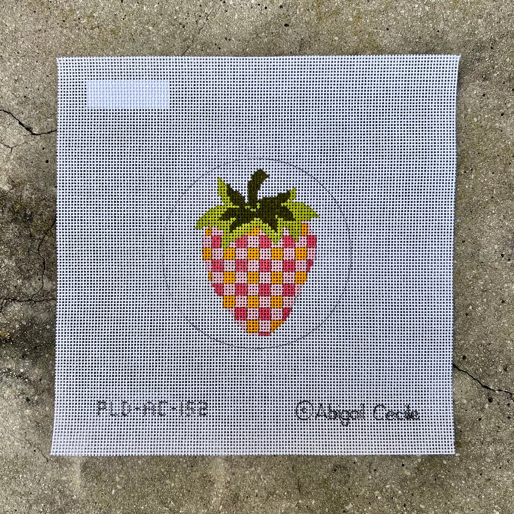 Pink Checked Strawberry Round Ornament