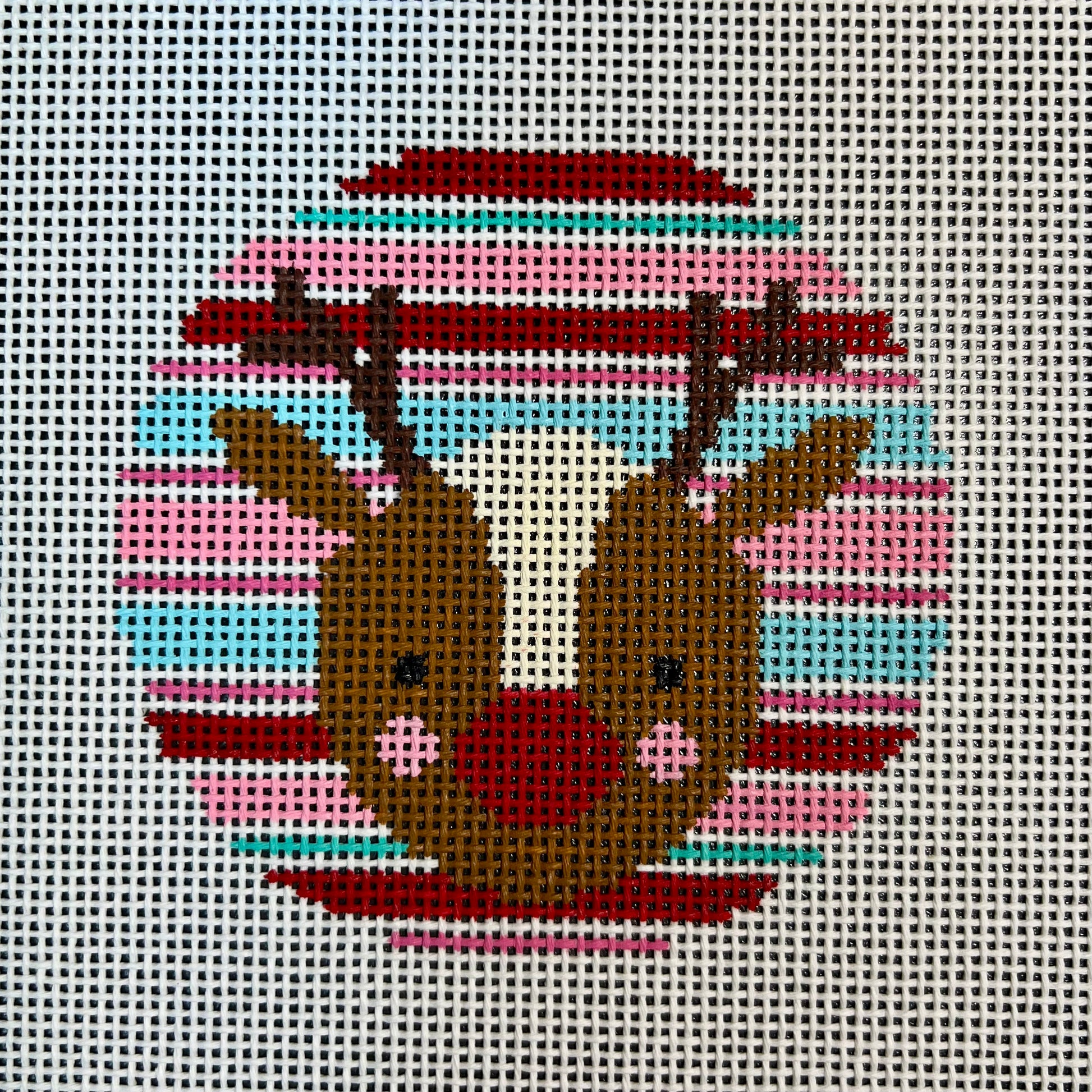 Striped Reindeer 4" Round Ornament
